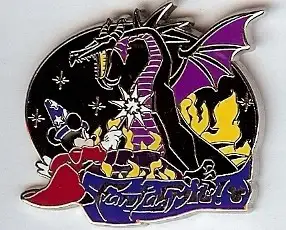 Pin features Mickey Mouse , Sorcerer Mickey and Dragon Maleficent