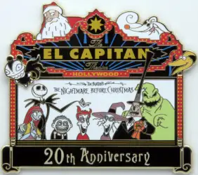 The Nightmare Before Christmas #11 20th Anniversary is a Limited Edition (LE) 500 pin from the El Capitan Marquee Series pin series. It was originally released on , 2013 and was available from Disney Studio Store Hollywood / Soda Fountain .