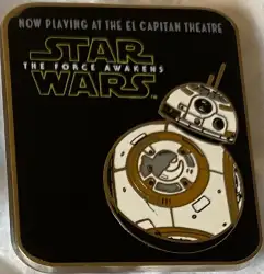 Force Awakens-BB-8 is a Limited Edition (LE) 2000 pin from the Star Wars: The Force Awakens pin series. It was originally released on , 2015 and was available from Disney Studio Store Hollywood / Soda Fountain .