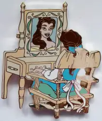 Belle in Her Mirror is a Limited Edition (LE) 500 pin from the Princesses in Mirrors pin series. It was originally released on , 2003 and was available from Disney Auctions .