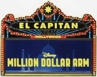Million Dollar Arm is a Limited Edition (LE) 300 pin from the El Capitan Marquee Series pin series. It was originally released on , 2014 and was available from Disney Studio Store Hollywood / Soda Fountain .