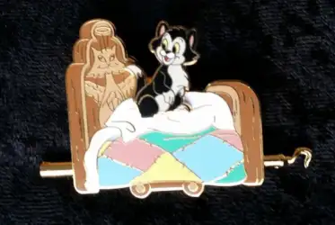 Figaro is a Limited Edition (LE) 400 pin from the Disney Cats Train pin series. It was originally released on , 2015 and was available from Disney Studio Store Hollywood / Soda Fountain .