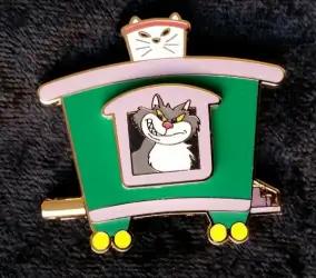 Lucifer is a Limited Edition (LE) 400 pin from the Disney Cats Train pin series. It was originally released on , 2015 and was available from Disney Studio Store Hollywood / Soda Fountain .