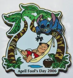 Stitch is a Limited Edition (LE) 2500 pin from the April Fool's Day pin series. It was originally released on , 2006 and was available from Walt Disney World .