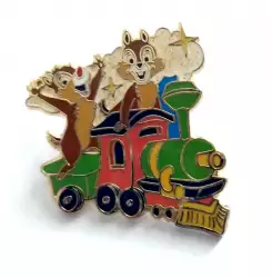 Chip & Dale Riding a Train is a Limited Edition (LE) 1500 pin from the The Happiest Place to Work pin series. It was originally released on , 2005 and was available from Disneyland Resort .