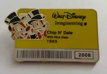 Chip N’ Dale ID Badge is a Limited Edition (LE) 300 pin from the I.D. Badge Series 2 pin series. It was originally released on , 2008 and was available from Walt Disney Imagineering .