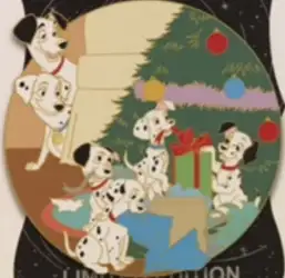 Pongo, Perdita and puppies Christmas morning is a Limited Edition (LE) 250 pin from the Holidays cats and dog 2016 pin series. It was originally released on , 2016 and was available from Walt Disney Imagineering .