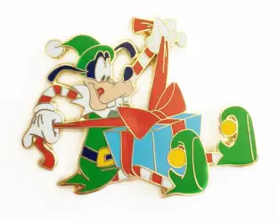 Goofy & Present Completer is a Limited Edition (LE) 1300 pin from the Mickey's Very Merry Christmas Party (MVMCP) 2017 pin series. It was originally released on , 2017 and was available from Walt Disney World .