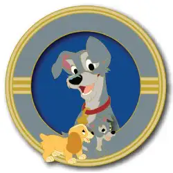 Tramp & Pups is a Limited Edition (LE) 300 pin from the Animal Families pin series. It was originally released on , 2020 and was available from Disney Studio Store Hollywood / Soda Fountain .