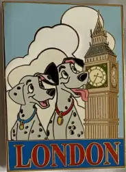London - Pongo & Perdita is a Limited Edition (LE) 500 pin from the Travel Poster pin series. It was originally released on , 2002 and was available from Disney Auctions .
