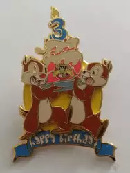 3rd Anniversary Chip and Dale holding cake is a Limited Edition (LE) 700 pin from the Pin Trading pin series. It was originally released on , 2004 and was available from Disneyland Resort Paris .