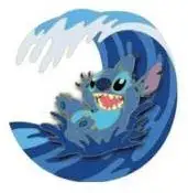 Stitch is a Limited Edition (LE) 300 pin from the Waves Series pin series. It was originally released on , 2020 and was available from Disney Studio Store Hollywood / Soda Fountain .