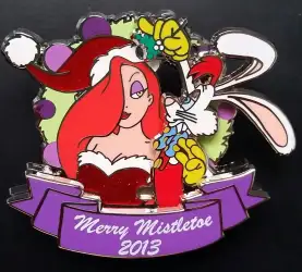 Merry Mistletoe - Jessica and Roger Rabbit is a Limited Edition (LE) 1500 pin from the Christmas 2013 pin series. It was originally released on , 2013 and was available from Disneyland Resort .
