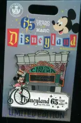 Main Street Cinema with Mickey is a Limited Edition (LE) 2000 pin from the Disneyland 65 Years of Magic pin series. It was originally released on , 2020 and was available from Disneyland Resort .