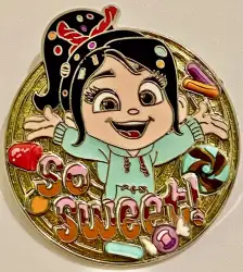 Vanellope - So Sweet! is a Limited Edition (LE) 2000 pin from the Disney Scents (Scratch and Sniff) Series pin series. It was originally released on , 2020 and was available from Disneyland Resort .