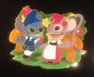 Stitch & Angel Gnome is a Limited Edition (LE) 300 pin from the Characters Dressed as Gnomes pin series. It was originally released on , 2011 and was available from Disney Studio Store Hollywood / Soda Fountain .