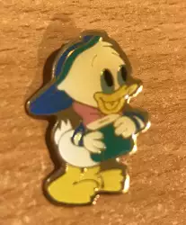 Dewey with Backwards Hat is an Open Edition pin from the Duck Tales pin series. It was available from an Officially Licensed Disney trading pin vendor (see description for more information).