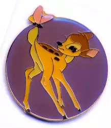 Bambi is a Limited Release pin from the Disney Channel 10th Anniversary 1993 Set of 10 Pins pin series. It was originally released on , 1993 and was available from Multiple Sources (WDW, DLR, etc.).