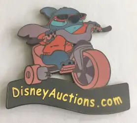 Stitch on Tricycle - DA logo is a Limited Edition (LE) 5000 pin from the Disney Auctions GWP pin series. It was originally released on , 2004 and was available from Disney Auctions .
