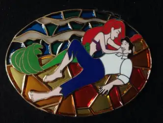 Ariel and Eric is a Limited Edition (LE) 100 pin in the Set of 6 6-pin set from the Stained Glass Prince & Princess pin series. It was originally released on , 2008 and was available from Disney Store US .