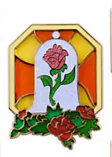 Enchanted Rose ONLY is a Limited Edition (LE) 100 pin in the Stained Glass Beauty and the Beast Set 6-pin set from the Stained Glass Beauty and the Beast Set pin series. It was originally released on , 2010 and was available from Disney Store US .