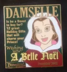 Belle - December is a Limited Edition (LE) 1000 pin from the Damselle Magazine Collection pin series. It was originally released on , 2008 and was available from Disneyland Resort .