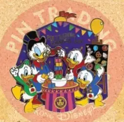 Pin features Scrooge McDuck , Dewey , Huey and Louie