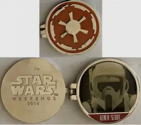 Bike Scout is a Limited Release pin from the Star Wars Weekends 2014 - Reveal / Conceal pin series. It was originally released on , 2014 and was available from Walt Disney World .