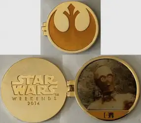 C-3P0 is a Limited Release pin from the Star Wars Weekends 2014 - Reveal / Conceal pin series. It was originally released on , 2014 and was available from Walt Disney World .