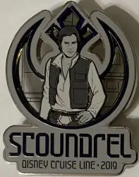 Scoundrel Han Solo is a Limited Edition (LE) 600 pin from the Star Wars Day At Sea pin series. It was originally released on , 2019 and was available from Disney Cruise Line .