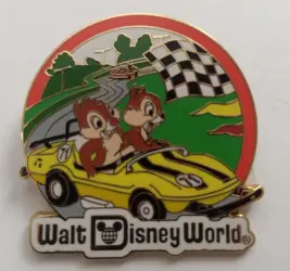 Chip and Dale on Grand Prix Raceway is a Limited Edition (LE) 1000 pin from the Gold Card Collection - Retro Walt Disney World pin series. It was originally released on , 2009 and was available from Walt Disney World .