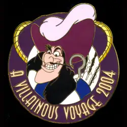 Captain Hook is a Limited Edition (LE) 500 pin from the A Villainous Pin Voyage - Welcome Gift pin series. It was originally released on , 2004 and was available from Disney Cruise Line .