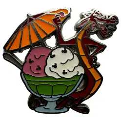 Mushu is a Limited Edition (LE) 300 pin from the (PTD) Pin Trader's Delight Series pin series. It was originally released on , 2013 and was available from Disney Studio Store Hollywood / Soda Fountain .