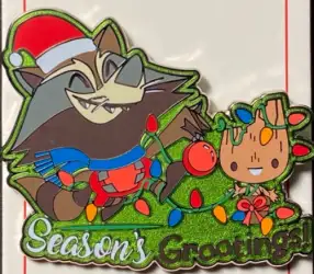 Rocket & Baby Groot is an Open Edition pin from the Marvel Holidays pin series. It was originally released on , 2020 and was available from Multiple Sources (WDW, DLR, etc.).