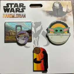 Star Wars: The Mandalorian Booster Pin Set is an Open Edition pin from the Star Wars: The Mandalorian pin series. It was originally released on , 2020 and was available from Multiple Sources (WDW, DLR, etc.).