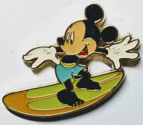 Mickey Mouse Surfing is a Limited Edition (LE) pin from the Cast Lanyard Refresh pin series. It was originally released in June, 2006 and was available from Disneyland Resort Paris .
