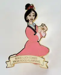Mulan is a Limited Edition (LE) 800 pin from the Fortune Cookie Mystery Set pin series. It was originally released on , 2008 and was available from Disney Store US .