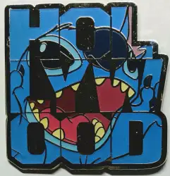 Stitch Hollywood (Surprise) is a Limited Edition (LE) 150 pin from the Hollywood Wording pin series. It was originally released on , 2012 and was available from Disney Studio Store Hollywood / Soda Fountain .