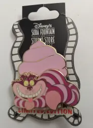 Cheshire cat is a Limited Edition (LE) 300 pin from the Alice in Wonderland Cupcakes pin series. It was originally released on , 2012 and was available from Disney Studio Store Hollywood / Soda Fountain .