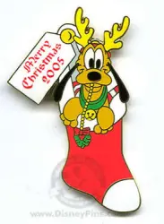 Pluto Stocking is a Limited Edition (LE) 2000 pin from the Merry Christmas 2005 - Pin Pursuit pin series. It was originally released on , 2005 and was available from Walt Disney World .