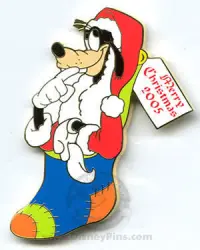 Goofy Stocking is a Limited Edition (LE) 2000 pin from the Merry Christmas 2005 - Pin Pursuit pin series. It was originally released on , 2005 and was available from Walt Disney World .