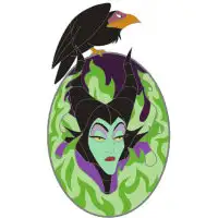 Maleficent & Diablo is a Limited Edition (LE) 400 pin from the Team Villains Oval Flames Collection pin series. It was originally released on , 2020 and was available from Disney Studio Store Hollywood / Soda Fountain .