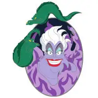 Ursula, Flotsom & Jetsom is a Limited Edition (LE) 400 pin from the Team Villains Oval Flames Collection pin series. It was originally released on , 2020 and was available from Disney Studio Store Hollywood / Soda Fountain .