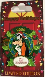 Fort Wilderness Resort & Campground - Goofy Wreath is a Limited Edition (LE) 2500 pin from the Resort Holiday Collection 2020: Glitter Wreaths pin series. It was originally released in November, 2020 and was available from Walt Disney World .