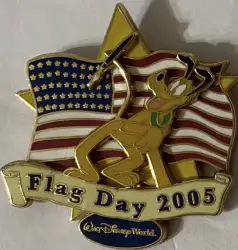 Pluto is a Limited Edition (LE) 2000 pin from the Flag Day pin series. It was originally released on , 2005 and was available from Walt Disney World .