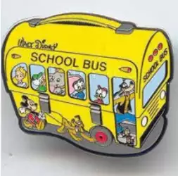 Yellow School Bus is a Limited Edition (LE) 2000 pin from the Vintage Lunch Box pin series. It was originally released on , 2003 and was available from Disneyland Resort .