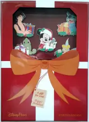Holiday Gifts Reveal Conceal Mystery Gift Boxed Set is a Limited Edition (LE) 1000 pin from the Reveal Conceal Mystery Gift Box Collection pin series. It was originally released on , 2020 and was available from Multiple Sources (WDW, DLR, etc.).