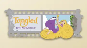 Tangled 10th Anniversary is a Limited Edition (LE) 250 pin from the Anniversary Film Strip Series pin series. It was originally released on , 2020 and was available from Walt Disney Imagineering .