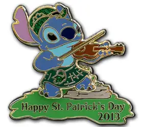 2013 - Stitch is a Limited Edition (LE) 3000 pin from the St. Patrick's Day pin series. It was originally released on , 2013 and was available from Multiple Sources (WDW, DLR, etc.).