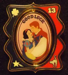 Snow White is a Limited Edition (LE) 600 pin from the Good Luck, Bad Luck Spinner Series pin series. It was originally released on , 2013 and was available from Disneyland Resort Paris .